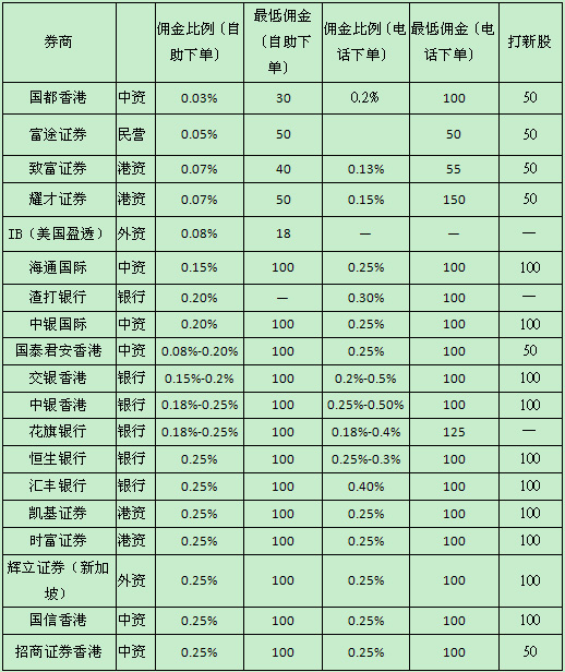 各银行及各券商佣金对比请见下图: