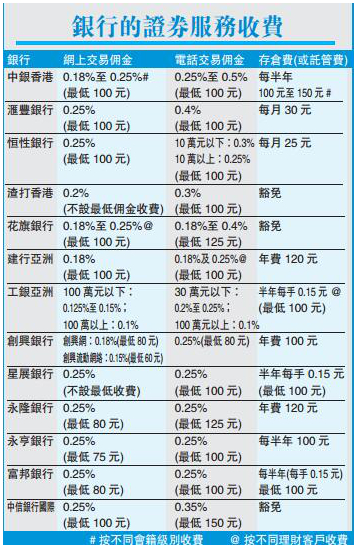 小心派息被倒扣钱 香港券商银行收费标准一览(表)