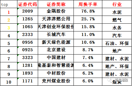 表二:雄安概念股周换手率top10