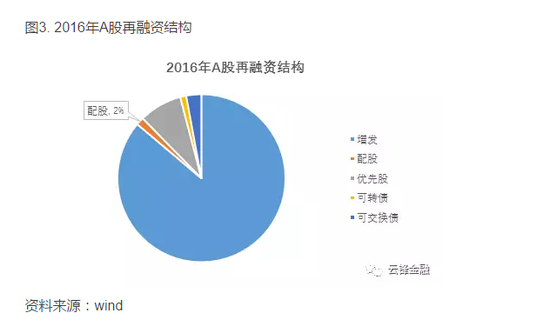 而A股市场的再融资则由定向增发一家独大。2016年,定向增发占比86.1%,配股仅占1.5%。不过随着年初定增新规的发布,监管层加强上市公司再融资监管,A股再融资结构将得到调整优化,传统的配股、可转债发行等有望回暖。像最近,热门股三聚环保(300072.SZ)就推出了公开配股方案。