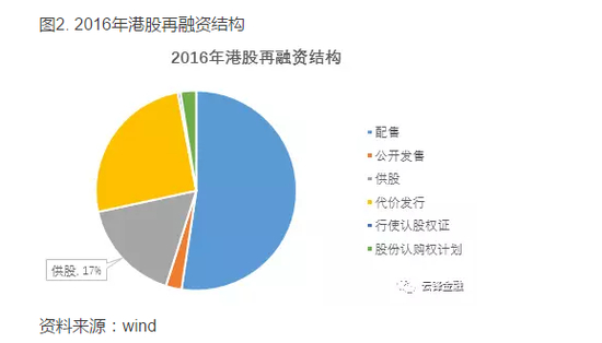 2016年,港股上市公司通过供股募集资金487.5亿港元,占上市后募资金额的16.7%。尽管这一金额较2015年锐减,但供股作为一种再融资方式,在再融资结构占比始终维持在10%以上。