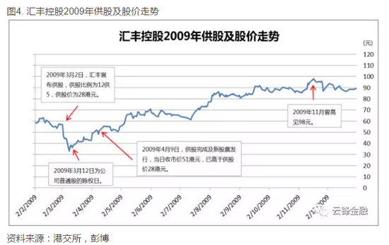 现在回头看,股价33港元已经是最低价,到供股完成当日(4月9日)股价已反弹至51港元,2009年底前股价更最高回升至98港元,比每股28港元的供股价上涨超过250%。