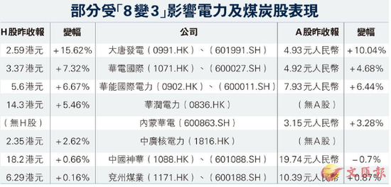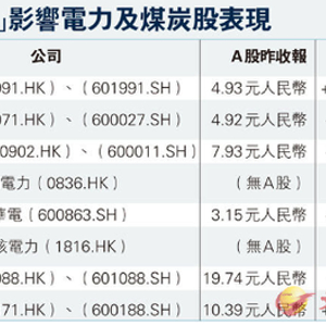 德银内地电力股受惠减煤价及电费折扣收窄,以及中长期受惠行业整合,调升内地电力股目标价,首选华电国际(1071)、华能(0902)及润电(0836)。