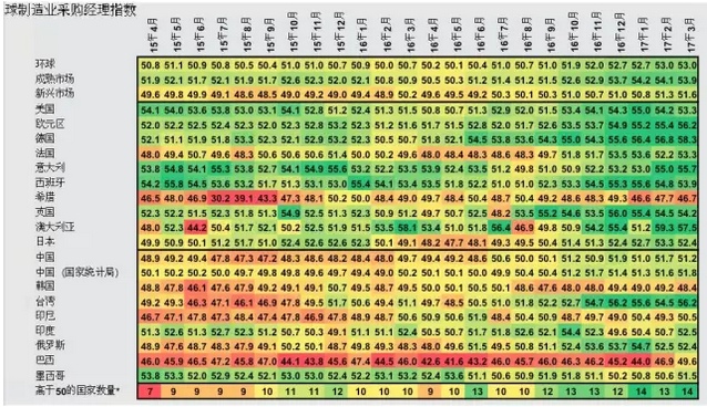 有很多数据可以看环球的数据,但我们通常看第一个看这个指标:环球采购经营指数。