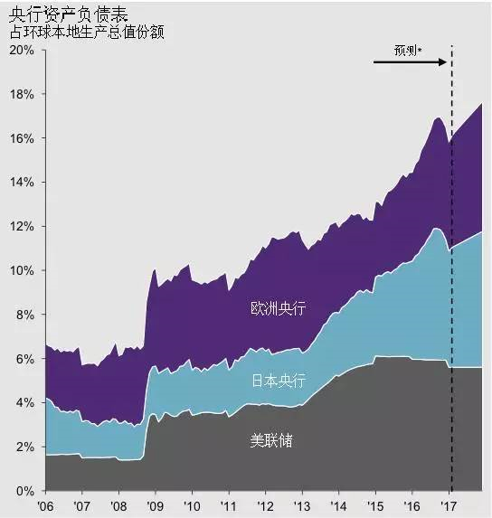 欧洲、日本的央行货币政策也逐步地出现变化,比如欧洲央行现在在讨论,他们的负利率政策什么时候开始回归正常?因为负利率政策对于经济的帮助其实不明显,唯一的受害者是欧洲的银行业。怎么样把这个政策逐步正常化?有没有条件正常化?这也是我们在经济研究、市场研究中非常重要的一环。另外欧洲和日本也有量化宽松,也有QE,但是他们现在面对的问题是不是他们不想做,在欧洲方面他们面临很大的政治压力,去央行停止或者放慢资产购买的规模。在日本方面,政府债40%持有在日本政府手中,如果继续买的话,对于市场的扭曲,长期的影响越来越严重。所以我们面对的是,在经济改善当中,宽松货币政策的需求或者需要越来越少。但同时在某一些国家,这些非正常或者非典型的货币政策也有一定的压力要出现改变。这方面对于未来市场的影响,也是我们非常关注的。