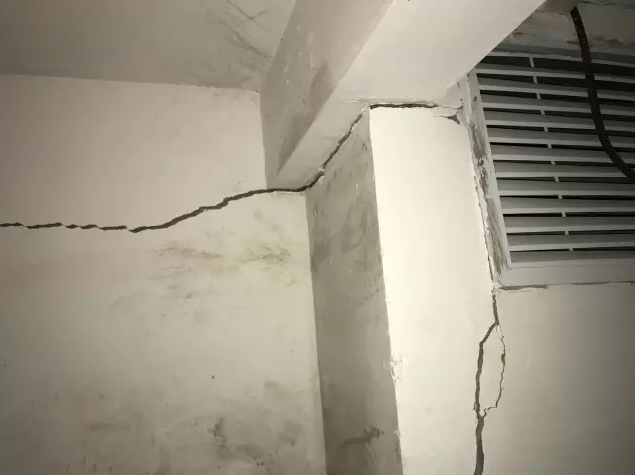 另一位业主于先生也向记者反映了他的问题——主卧、次卧、客厅的墙壁都出现了裂缝。地下室的状况更甚,他向记者出示了几张地下室的照片,上面的柱子、墙壁都敞开了黑洞洞的口子,钢筋都露了出来。“反映给物业没人管,直接投诉到总部了,后来,物业找人把墙砸了,重新砌墙,具体原因没说。”