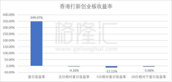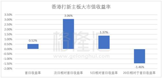 从样本数据中,总结出了四个维度,分别计算港股首日,次交易日,五个交易日,20个交易日的收益率衡量其总体情况。