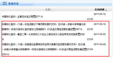截至2017年5月15日收盘,新华通讯已经涨到0.58港元/股,相比于0.038港元/股的中国华仁医疗,差距又拉大了一个档次,而华仁医疗自3月份以来,已经5次延迟寄发要约文件并进行公告了。