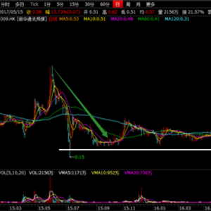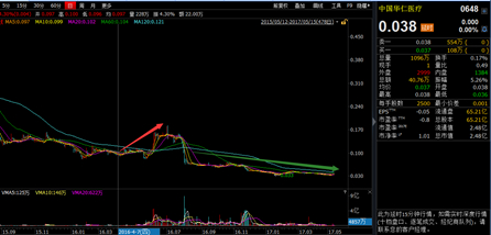 就在一年后的2016年12月,公司股价突然爆发,短短5个多月的时间,疯一般的涨了近2.5倍,从0.18港元/股,冲至0.62港元/股的高点。而这个高点,就是在2017年5月15日涨幅20%多时创造出来的。