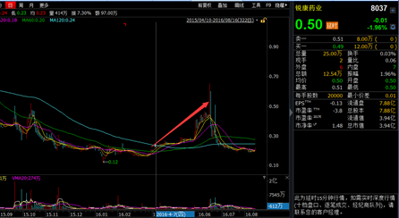 公司近一年的股价一直在往下走了,而最近一次上涨的股价走势,就是2016年4月份,同样是以换股形式,成功收购锐康药业(08037),并成为其单一大股东。