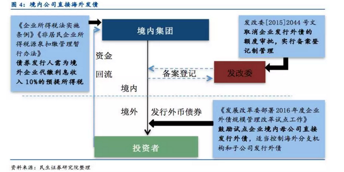 2. 监管要求较高,但已有所放开。在2015年发改委2044号文出台之前,直接发境外债主体主要为金融机构和大型国有企业。但2044号文出台之后,政策支持海外募得资金优先用于“一带一路”、京津冀协同发展、长江经济带发展等重点领域,降低了某些行业直接发债渠道的进入门槛。