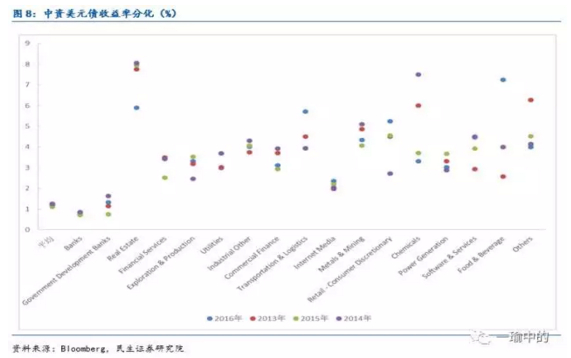 静态,从目前尚未偿还的中资美元债来看,银行业、房地产和金融服务业合计占比超过50%。