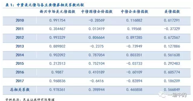 中资美元债的投资属性分析。中资美元债与新兴市场国家美元债走势相关性较高,2010年以来中资美元债与新兴市场国家美元债相关系数为0.98;与美国、中国的债券走势相关性较低,2010年以来中资美元债与中债、美债相关系数分别为0.40和0.57,表明从风险收益属性上来看,中资美元债是跟新兴市场整体的,并非纯粹跟国内或者跟美国。这里中资美元债占比新兴市场美元债整体比重为13.5%,因此相关性并非是因为占比过高,的确是投资属性决定。