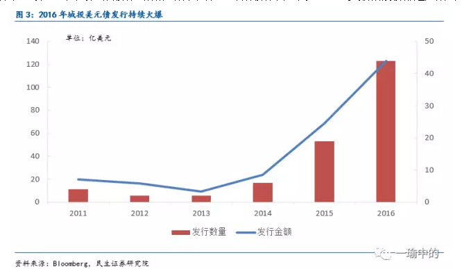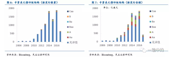 中资美元债发行自2010年起开始提速,至2016年达历史最高。无论从发行数量还是发行总金额来看,过去五年中资美元债整体发行出现大幅增长。