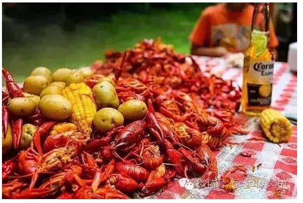 当然,美国人的吃法跟我们不一样,他们煮小龙虾时,会选用大汤锅,撒下cajun粉(配料包括辣椒、柠檬、胡椒、芹菜粉、月桂叶、姜粉、芫荽籽、芥末籽、洋葱和盐),然后倒满小龙虾,加上玉米、土豆一起熬煮。