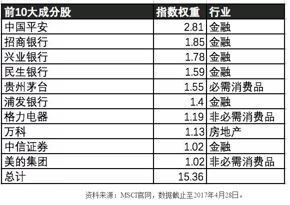 还没完,如果把MSCI海外中国指数、MSCI中国指数还有MSCI中国A股指数加总起来,就成了MSCI全中国指数(MSCI All China Index)。截止4月底,这个指数有1015支成分股,可谓是覆盖整个中国上市企业的大而全的指数了。