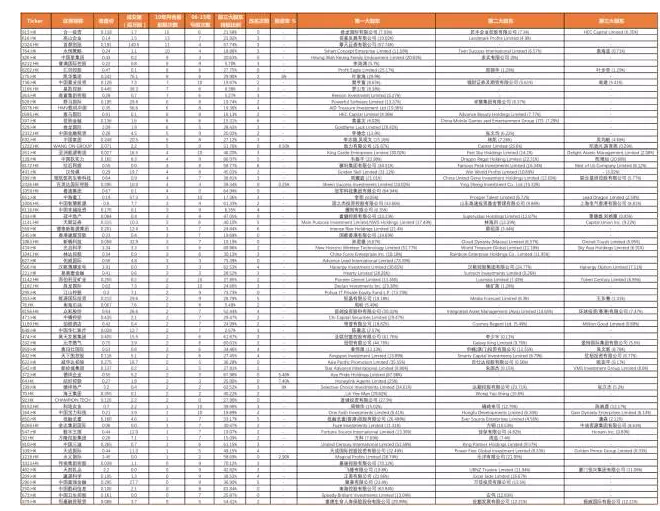 (1)大股东持股比例较大,因为需要不断地配售、拆股、合并股份等财技操作,大股东需持有较大份额的股份才能保证利益。