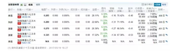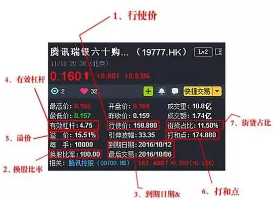 牛熊证全称为可收回牛熊证(callable bull/bear contract,简称CBBC),是投行/券商发行的追踪标的资产表现的一种结构性产品。牛熊证分为牛证和熊证,牛证在正股上涨的时候上涨,正股下跌的时候下跌,熊证则相反。以腾讯为例,在“腾讯摩通七乙熊A”此牛熊证中,“腾讯”指标的名称、“摩通”指发行投行、“七乙”指2017年12月到期、“熊”指看跌的熊证、“A”代表同期发行的A号熊证。虽然市场上存在牛熊证的流通性提供者,但并不代表投资者一定能够按自己的需求价格来买卖牛熊证。而且在成交量不高的情况下,就会存在流通性风险,这也将影响到标的资产价格能否得到合理的反映。
