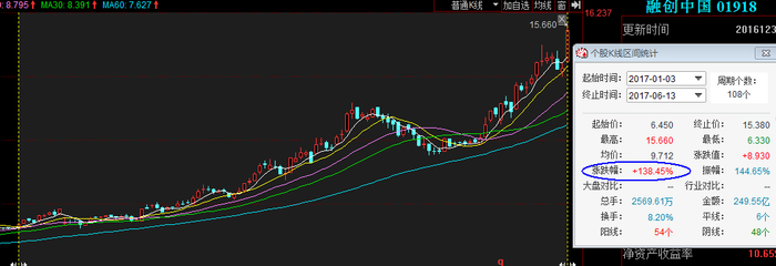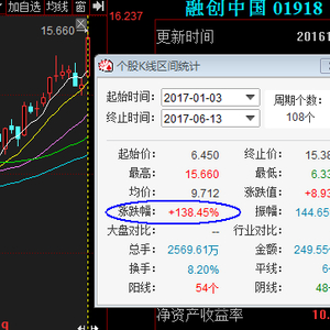 自2017年至今,融创中国累计涨幅为138.45%;股价也由原来的6.45港元大涨了138%;市值由251亿港元翻番至599亿港元。