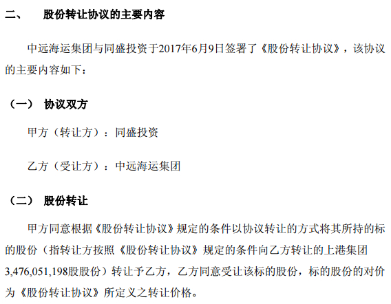 那么这个进一步的利好有可能是什么呢?智通财经又注意到了这样一条消息:上港集团6月12日晚间公告,同盛投资拟将其持有的公司34.76亿股协议转让予中远海运集团,双方确认标的股份的价格为5.45元/股(公司最新股价为6.18元/股)。