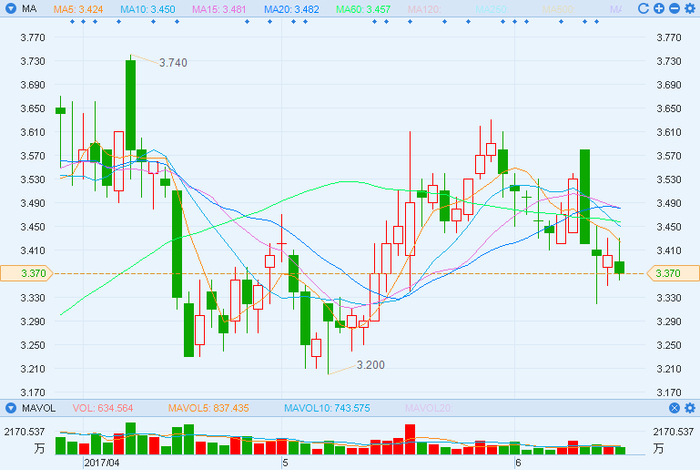 就在本周一(6月12日),一个不太寻常的现象出现在了中远海控(01919)的日线图上:在交易时间的最后一秒成交量飙升到了161.1万,一下将中远海控的股价拉到了3.4港元,即使考虑到尾盘集合竞价的因素,这同样值得推敲: