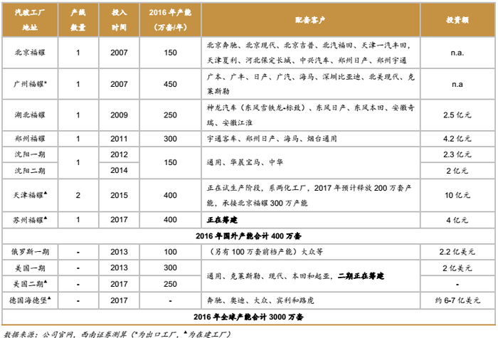 此外,福耀在俄罗斯有约100万套产能,而在德国的工厂已经开建。