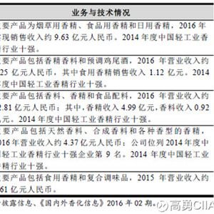 (3)中国香精香料披露的毛利率为综合毛利率,包含了香味增强剂、香精、香料、保健品等,产品种类的差异导致了综合毛利率水平的不同。