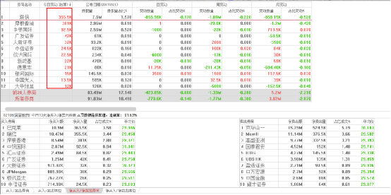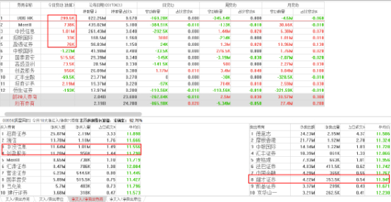 在盘中资金的流向可以看出,在下跌的过程中,买方力量多次试图反扑,但是仍不及卖方力量。从联席券商的交易情况具体来看,其前五大联席券商均出现了不同程度的加仓,代表内地资金南下创盈服务和中投信息均出现在买方席位上,而代表香港散户的耀才证券则出现在卖方。