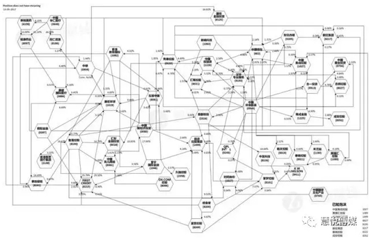 不过它持有的个股数量却是很多,图中它有17个指向外面的箭头,这些个股也同样跌幅巨大。