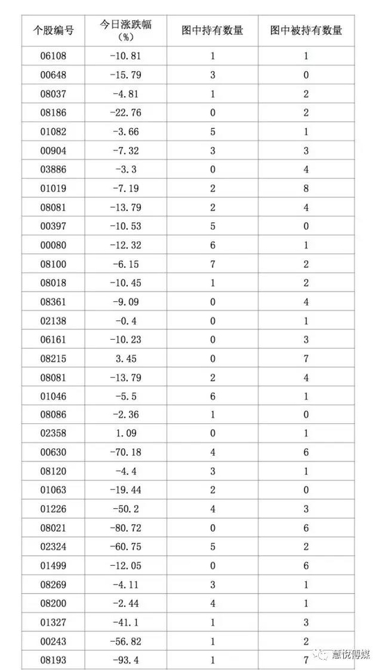 今天跌幅靠前的汉华专业服务(08193)是这里面被持股较多的公司,图上有7个箭头指向它。