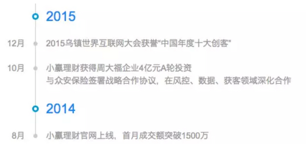 除此之外,周大福还将目光放到了互金平台小赢理财上。2015年的10月,周大福就拿出6000万美元参与到小赢理财的A轮融资中。