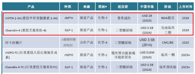比较有看头的品种有两个,都在内分泌领域,一个治疗骨质疏松,一个治疗糖尿病。