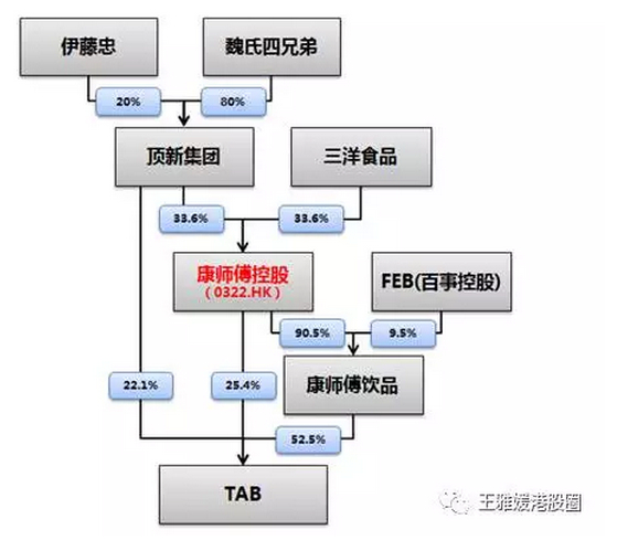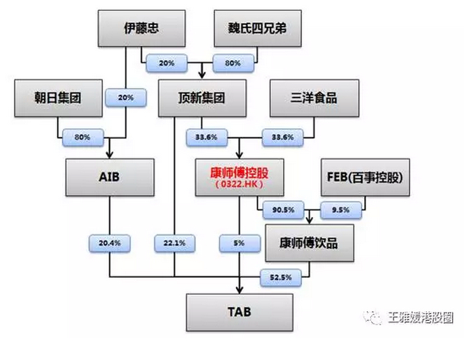 或许看康师傅的股权结构图能让我们更好地理解。下图显示于本公告日期的TAB股权架构: