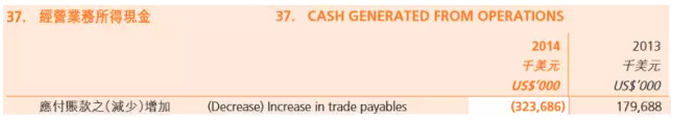 由于2014年康师傅应付账款变动剧烈,导致经营活动所得现金大幅减少。