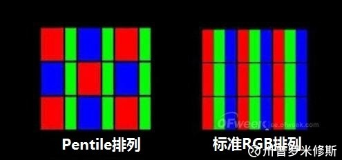 至于早期OLED屏被人诟病的分辨率问题,是因为蓝光材料寿命不过关,逼得三星只能通过增大蓝光材料面积,以降低单位面积发光强度来延长蓝光寿命,也就是所谓的Pentile排列,这种排列下蓝色、红色像素点变少了,从而导致显示效果比分辨率数据难看。