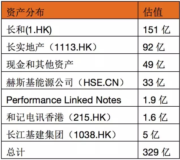 李嘉诚资产分布表(单位:美元)