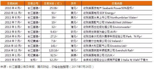长和系近年重大海外收购项目