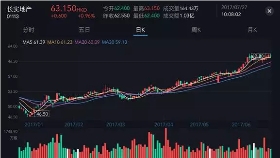 长实地产(1113.HK)2017年上半年股价走势
