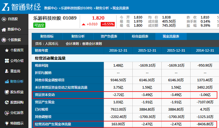 智通财经APP发现,乐游剥离掉家禽业务后,如果按经重列的业务收入计算,它2016年营收为8.56亿元,同比增长165%,毛利为4.9亿元,同比增长188%,但是它的经营现金流净额却很少,2016年仅为163万元。如果将时间倒退至2014年,乐游的经营现金流净额已连续几年为负数,2015年度为-2.47亿元。而2016年乐游又做了很多收购动作,积累不少债务。