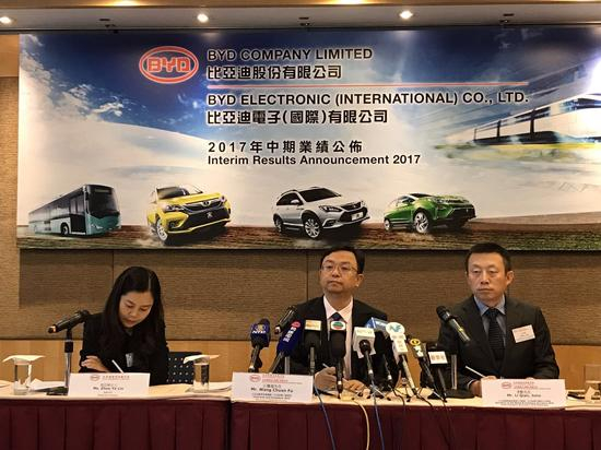 新浪财经8月29日消息,比亚迪公布截至2017年6月31日止中期业绩,上半年集团营业额约438.17亿元(人民币,下同),毛利率81.69亿元,母公司拥有人应占溢利为17.23亿元,较去年同期下降23.75%,董事会决议不派发中期股息。