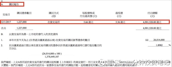 骤眼看,似乎公司回购对资产净值的提升(5.2%),比派息回报更高(5.0%)。不过,这里会牵涉几个重要问题:第一个是以A公司回购为例,公司用每股2元,只买了价值1元的资产,其实是非常不明智,因为同样的款项,用于业务发展,可能会产生更大的价值。