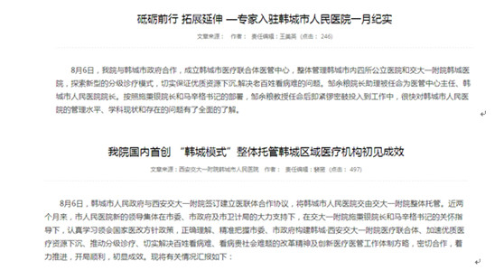 首先所有西交下面的医院全部进供应链要知道西交托管,西交相应政府要求做了医联体,主动承担与雁塔区4所二级医院和12家社区卫生服务中心的分级诊疗试点工作,在全国首创“医联体+全科医师”的城市分级诊疗模式。同时,按照“两院两区四分院”的战略布局,全面托管陕西省彬县医院、韩城全部的公立医院。与长安区医院达成战略合作协议,与延安新区医院沟通开业筹备事宜。而且现在给卫计委树立典型,环球拿下这个项目绝对在业内有标杆作用。为了解我院公立医院综合改革情况,9月29日上午,国家卫生计生委体改司调研组一行由监察专员姚建红带队莅临我院进行实地调研。整体托管韩城区域医疗机构是国内首创“韩城模式”,其影响在不断增加。无锡市第二人民医院、延安市卫计局、汉中市中心医院等多家单位先后到韩城市人民医院参观学习,高度肯定“韩城模式”的创新性、实践价值以及借鉴和促进作用。