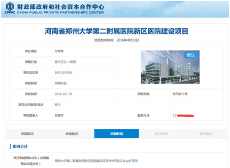 郑大二附院也是一个三甲医院年营收也超过10亿,不过和郑大一附院百亿营收相比,真是九牛一毛了,现在公司反馈郑州项目已经进财政部PPP项目库排队中投资预算16亿,是未来1-2年着重储备的项目。