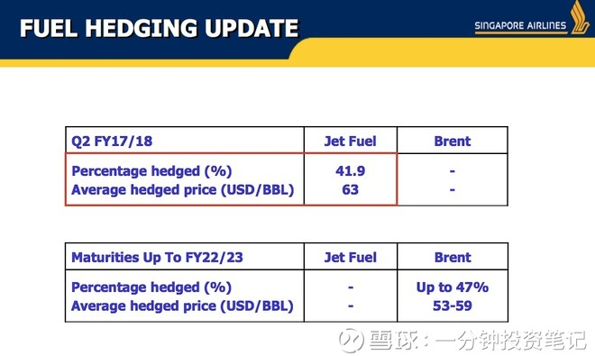 如果对比新加坡航空,公司今年第三季以平均价每桶63美元对冲约42%飞机燃油(而非布兰特燃油,为何国泰声称公司无法对冲飞机燃油?)而长期(至22/23年度)而言,公司以53至59美元对冲最多47%的布兰特原油,可见无论在价格及占比上,都比国泰保守但合理。同时,亦可再次反映出,国泰当年大幅提高对冲比例,投机的嫌疑较高。