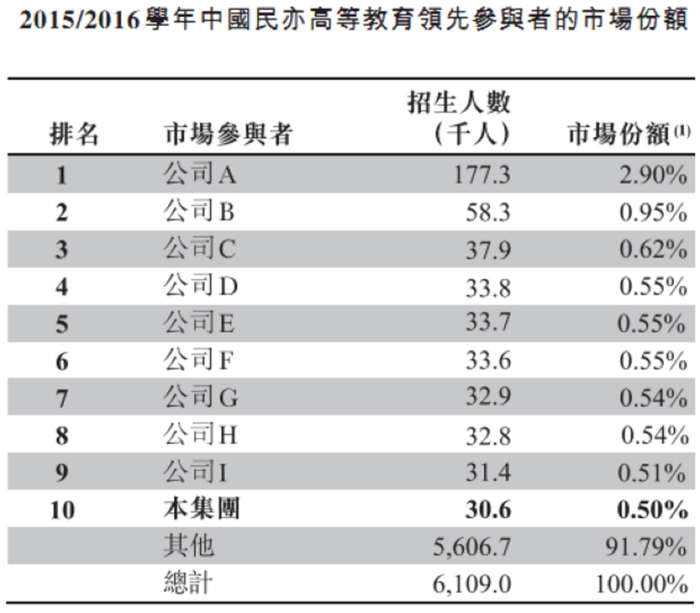 招股书还提到,对于即将来临的2017/2018学年,广东白云学院将提高其部分普通本科课程的学费,由2016/2017学年的每年人民币1.9万元至人民币2.6万元提高至每年人民币2.2万元至人民币3万元,而江西科技学院将提高其部分普通本科课程的学费,由2016/2017学年的每年人民币1.4万元至人民币1.8万元提高至每年人民币1.5万元至人民币2万元。