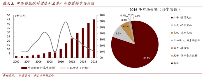 在介于乐观和悲观二者之间的基准情形下,我们预计第一年的渗透率为12%,随后每年提升7~8个百分点,则Monster的市场份额将在推出后的6~7年达到红牛的水平。目前功能饮料的市场规模(出厂口径)约为310亿港元,我们假设未来几年需求量CAGR约为10%。