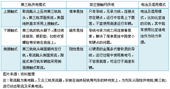 以前的轨道交通主要有两种电力来源,一种是第三轨供电模式,另一种则是架空接触网供电模式,但比亚迪云轨面世后,出现第三种供电模式,即电池或混用供电模式。智通财经将上述三种模式及其特点绘制成表格,供投资者参阅: