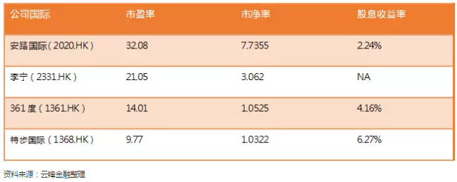 正如上文所述,361度业务增长虽然不一定能够支撑股价直接飙升50%,然而终归是一个利好的消息,10月份公布的第三季度业务表现同样维持不错的增长率。因此当8、9月份的溢价被全部吞噬后,估值再次显得便宜。对标另外几大品牌,安踏国际超过30倍市盈率、李宁接近21.14倍市盈率、361度13.82倍市盈率和4.23%股息率开始变得吸引。当然更便宜的是“四弟”特步国际只有9.66倍市盈率和6.45%股息率,考虑上特步糟糕的中期报,特步或许不能和三位业绩保持增长的“大哥”估值直接相比。