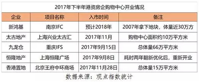 但进入今年下半年后,港资企业开始打破沉寂,凭借丰富运营经验和项目高利润率的优势,商业地产成为它们的首要选择。据不完全统计,包括新鸿基(00016)、太古、恒隆、九龙仓、香港置地在内等都陆续有项目亮相,或者重新开业。