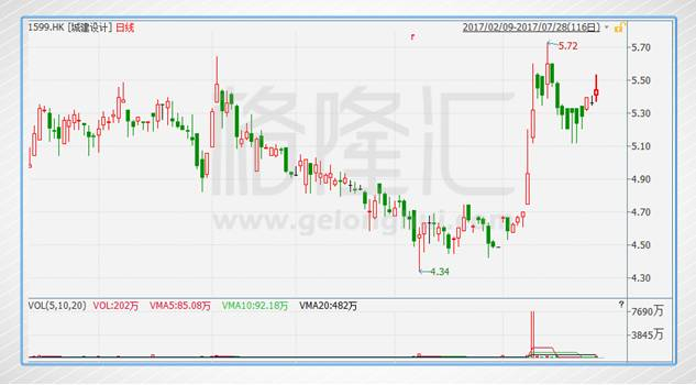 但在股价在业绩造好,基建环境良好,订单继续增加的情况下,消息面上公司也没有特别的消息,城建设计开始了一段为期3个月的阴跌,从4月6日到7月7日,股价跌去14.14%,7月7日报4.7港元。
